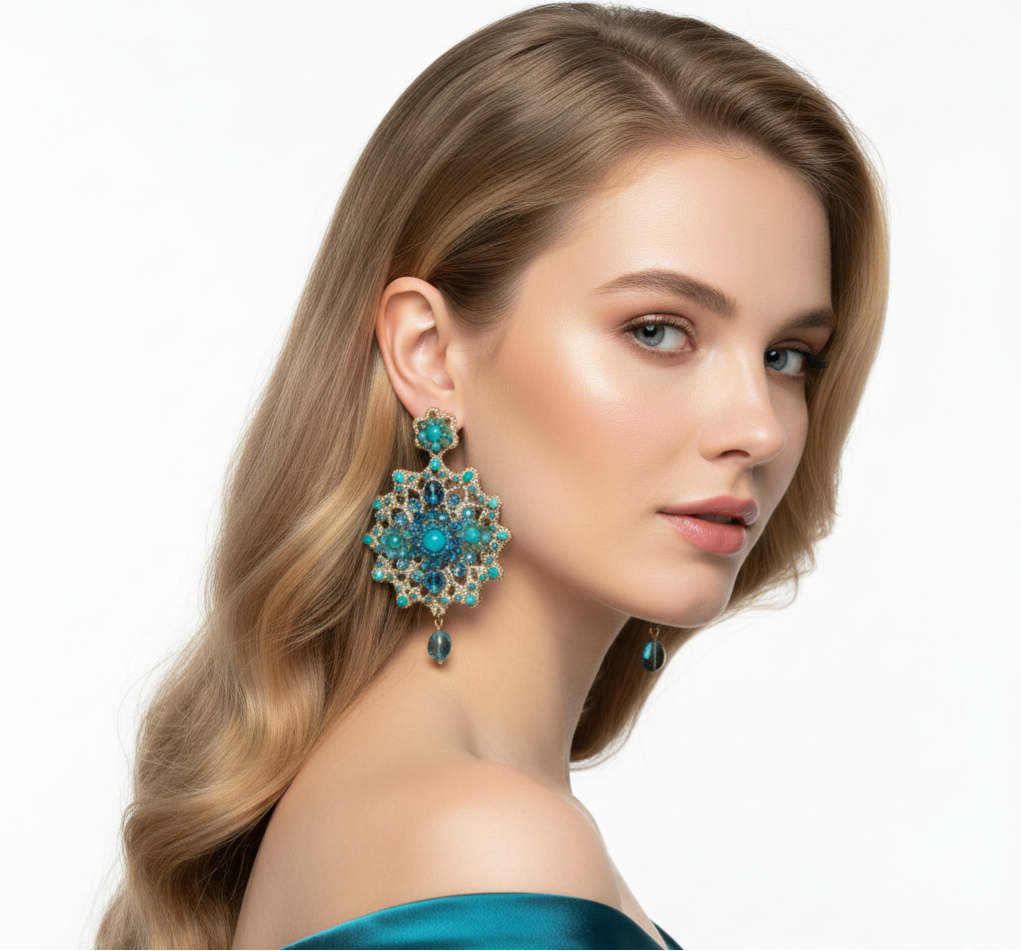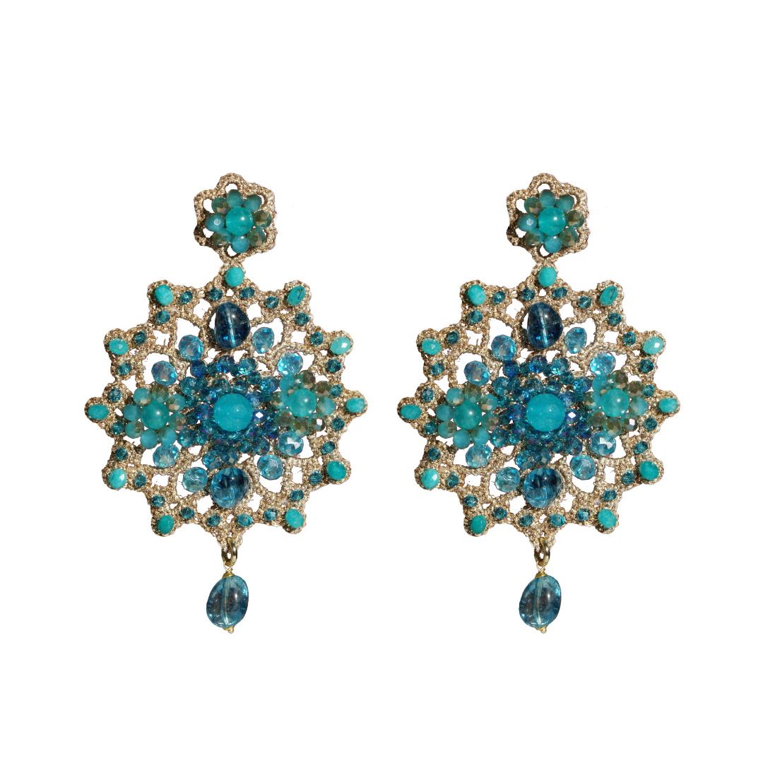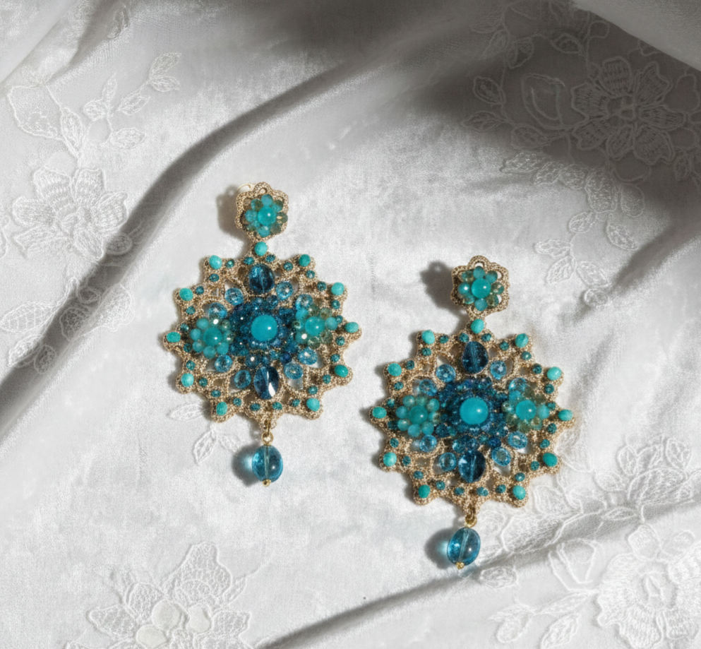 Gli orecchini Arianna Ottanio sono una celebrazione di stile e mistero. La raffinata tonalità ottanio, un mix perfetto tra blu e verde, si intreccia alla trama dorata del pizzo, creando un accessorio dal fascino regale. Se cerchi dei gioielli fatti a mano in pizzo chiacchierino siciliano che sappiano donare intensità al tuo sguardo, il modello Arianna è la scelta ideale per un look sofisticato e moderno.
