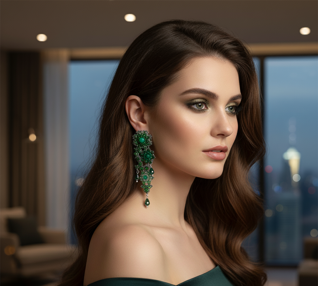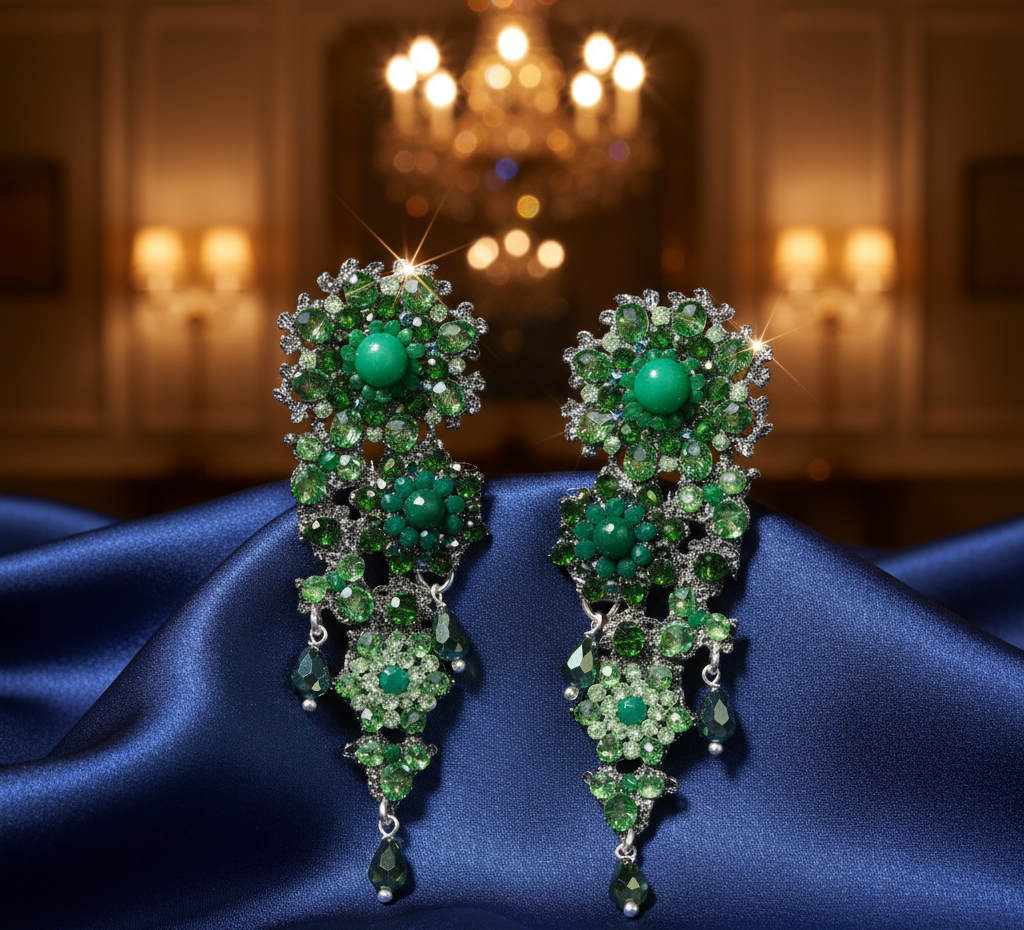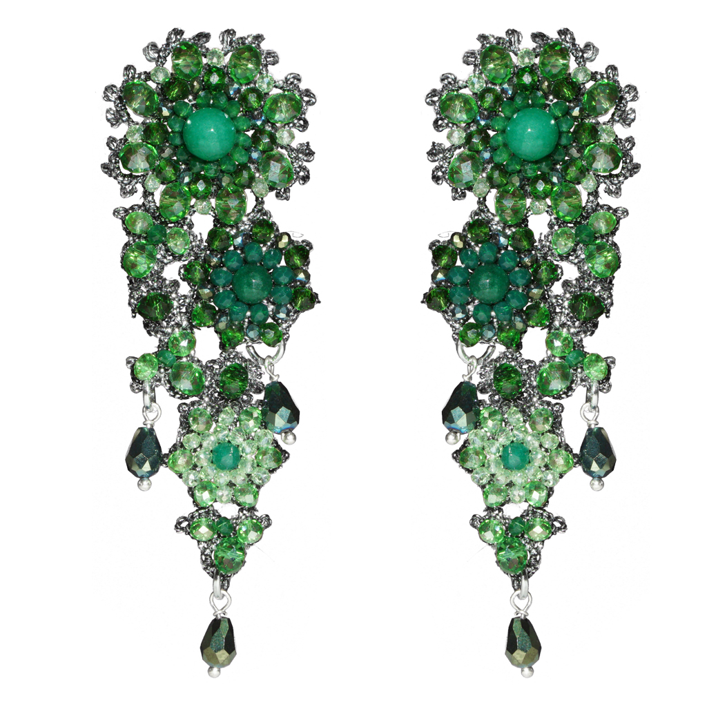 Questi orecchini lavorati a mano con l’antica tecnica del pizzo chiacchierino siciliano, sono un’esplosione di freschezza e artigianato, catturando l’eleganza vibrante dei giardini e delle gemme preziose. La composizione è interamente dedicata al colore Verde Smeraldo e alle sue sfumature. Cristalli sfaccettati e piccole perline nelle tonalità del verde chiaro e del verde bosco sono sapientemente accostati. Sono l’accessorio perfetto per eventi all’aperto o per aggiungere un punto di colore vibrante e sofisticato a un abito in tonalità neutre o complementari.